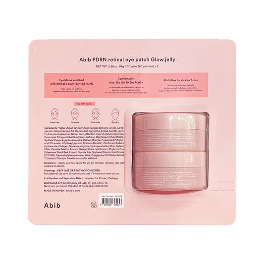 Abib PDRN Retinal Eye Patch Glow Jelly 60 patches x 2ea ์๋น๋ธโจPDRN ๋ ํฐ๋ ์์ดํจ์น 60ํจ์น X 2๊ฐ์