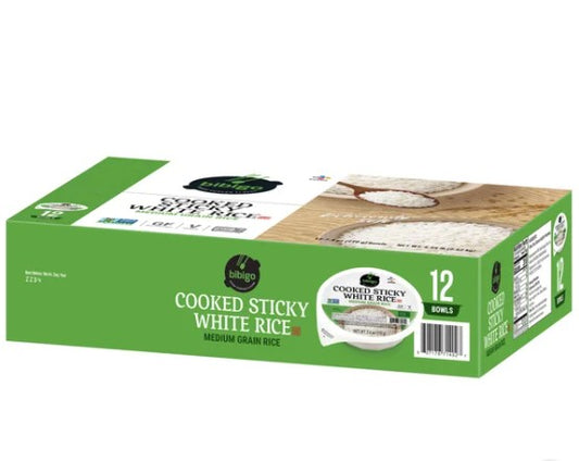 Bibigo Cooked Sticky White Rice Bowls, Medium Grain, 7.4 oz, 12-Count