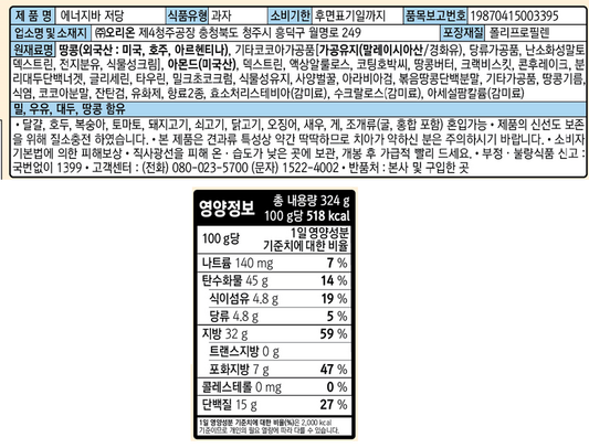 Dr. You Low Sugar Energy Bar Mini 324g (10.3g x 23ea) 닥터유 저당 에너지바 미니 324g (10.3g x 23ea)