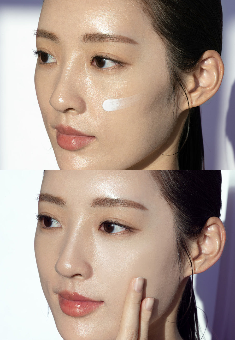 Achieve a clear and radiant glow with purple tone-up sun care. This sunscreen provides a cool-toned color correction for a refreshing finish. Its lightweight and fresh texture blend smoothly onto the skin, offering a light and fresh finish.