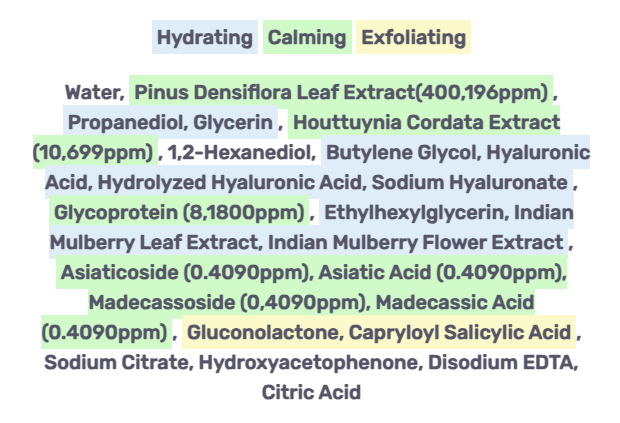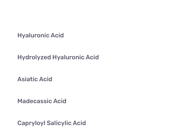 - Asiatic Acid: Antioxidant-rich ingredient that reduces inflammation and soothes irritated skin.