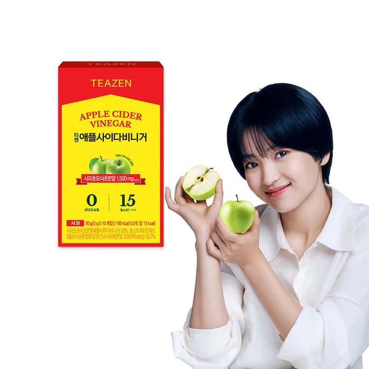 Teazen Apple Cider Vinegar is made from green apples grown in Gyeongbuk, Korea and processed through a premium 3-step fermentation method, delivering a clean taste and natural benefits in a convenient stick.