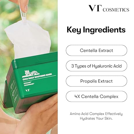 Elevate your skincare routine with the VT COSMETICS CICA Daily Soothing Mask and enjoy refreshed, glowing skin—every single day. 🧖♀️✨